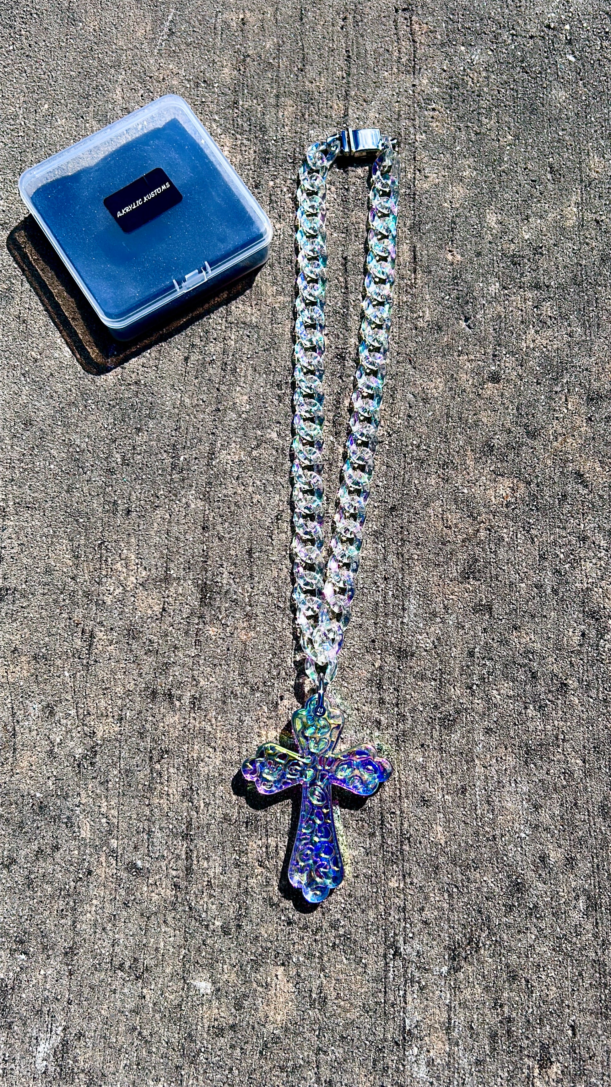 Experience the mesmerizing beauty of our Acrylic Necklace Hybrid Iridescent - where color meets light in perfect harmony. This stunning hybrid design features The Original Iridescent acrylic combined with the Acrylic Cuban Iridescent that shifts and shimmers with every movement, creating a captivating rainbow effect that's truly one-of-a-kind. The innovative hybrid construction offers versatile styling while the iridescent finish adds an enchanting touch to any outfit.